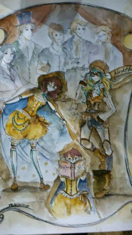 La exposición de Arte llamaba mucho la atención. Era una simple mesita redonda con una maleta abierta y utensilios aparentemente de pociones, al rededor de los cuales estaban las obras de arte.